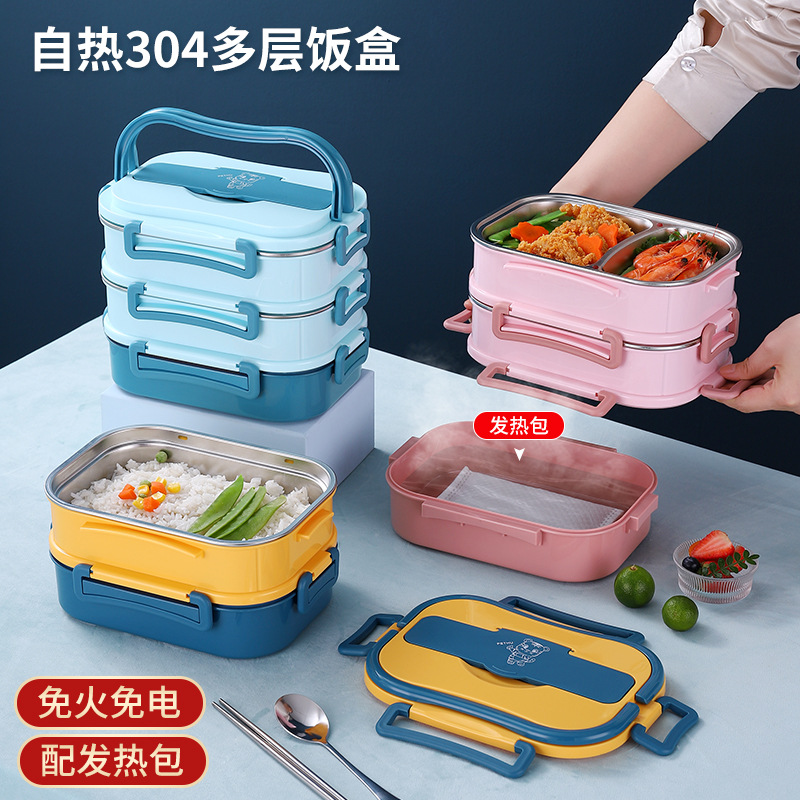自熱弁当箱多層自熱無電気保温弁当箱卸売り成人サラリーマン蓋付き弁当箱