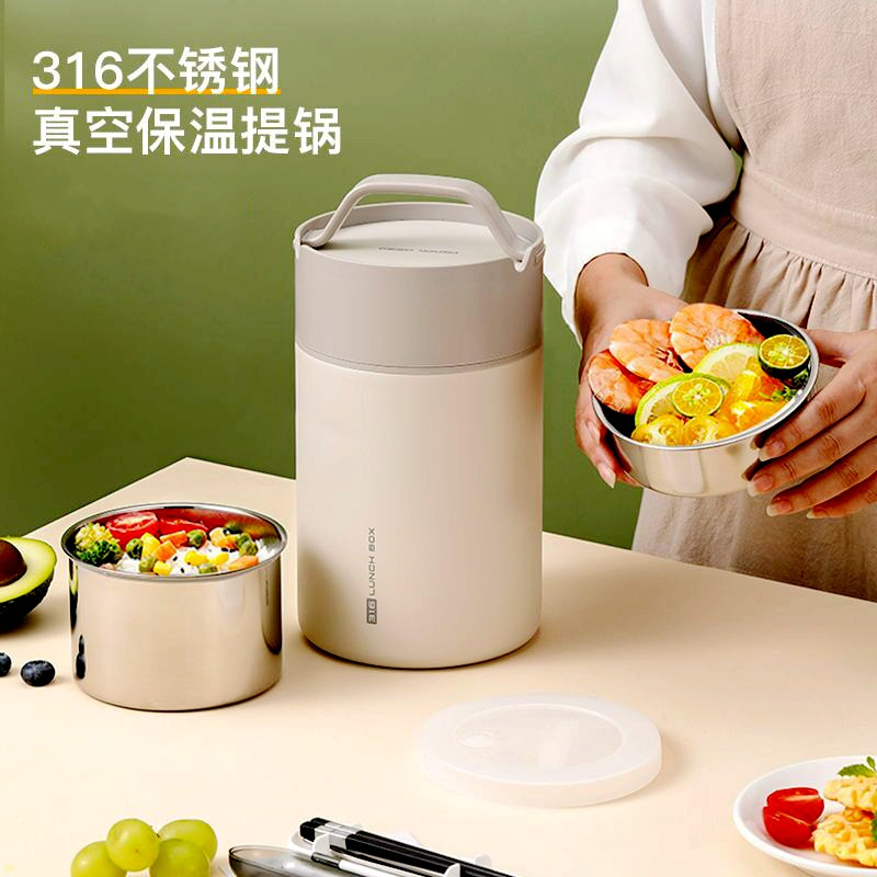 厚さ316ステンレス保温弁当箱保温桶男女真空三層学保温弁当桶大容量鍋