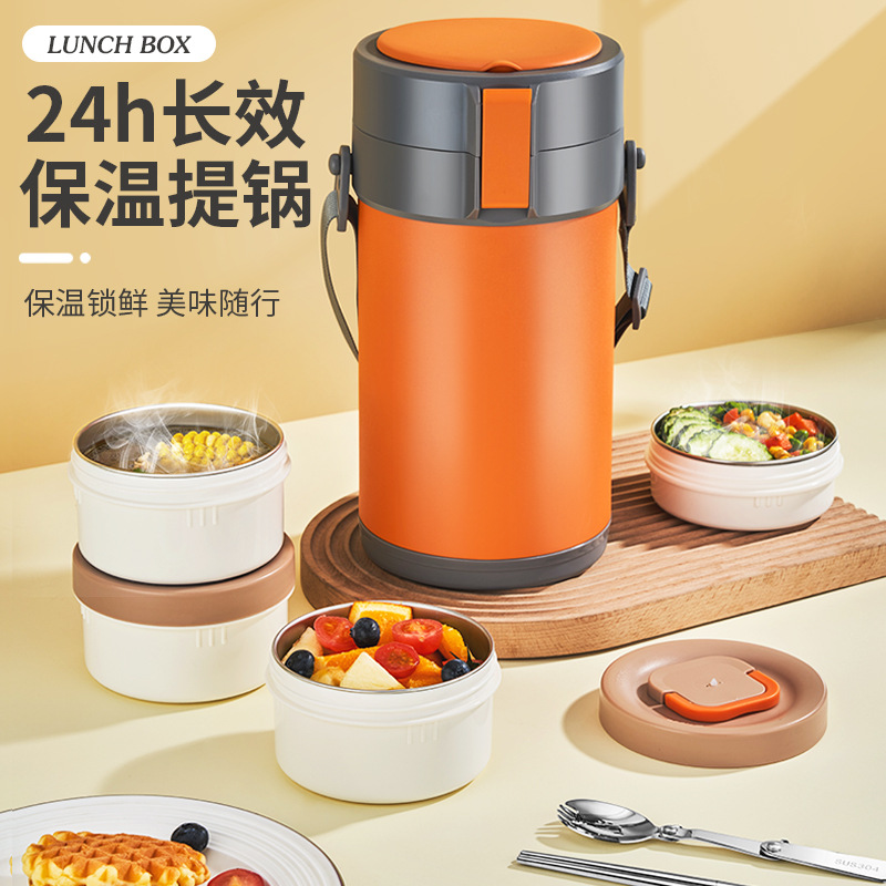 ステンレス鋼厚手保温ポット大容量保温バケツ三層多層弁当箱成人学生保温弁当箱