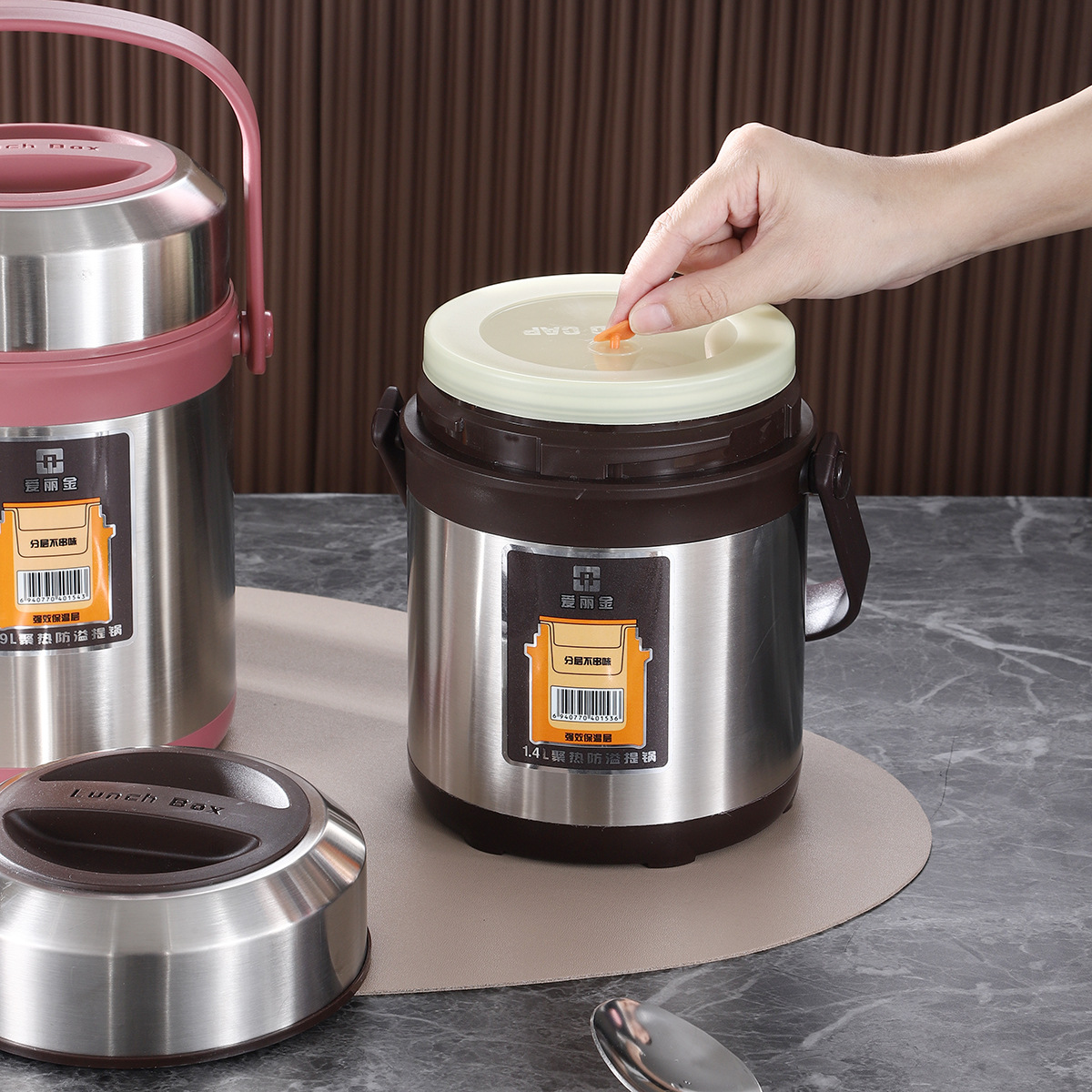 ステンレス保温提鍋シールオーバーフロー防止二重保温提桶蓋付き弁当箱実用イベントプレゼント