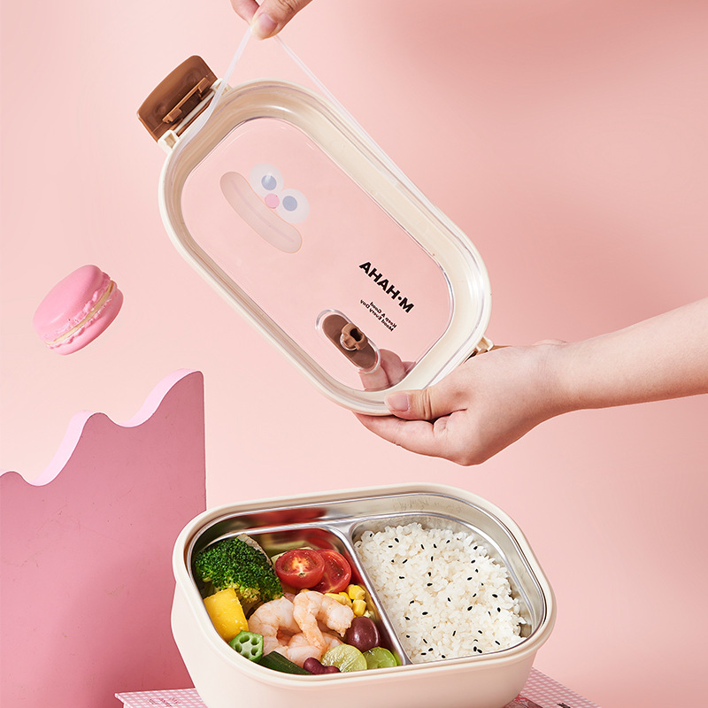 家庭用かわいいビッグマウスハハステンレス弁当箱学生小学生分割弁当箱サラリーマンポータブル蓋付き