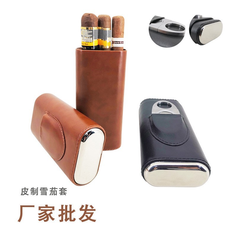 現物シガーカバー金物管シガー筒真皮シガー皮カバーシガー保湿箱保護カバーコンパクトプレゼント