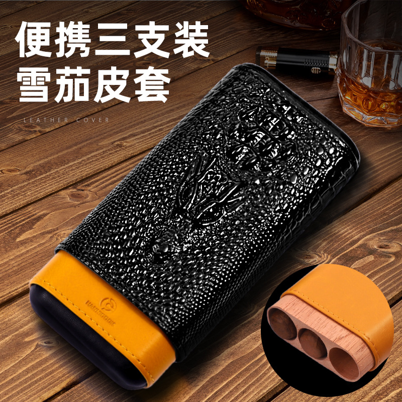 新商品卸売り携帯真皮シガーバッグ3本入狂馬油皮シガー皮カバー旅行服レトロシガーバッグ
