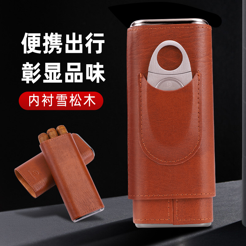3本入りPUシガーケース 携帯用ギフト卸売シガーボックス 保湿3本入り杉材シガーケース
