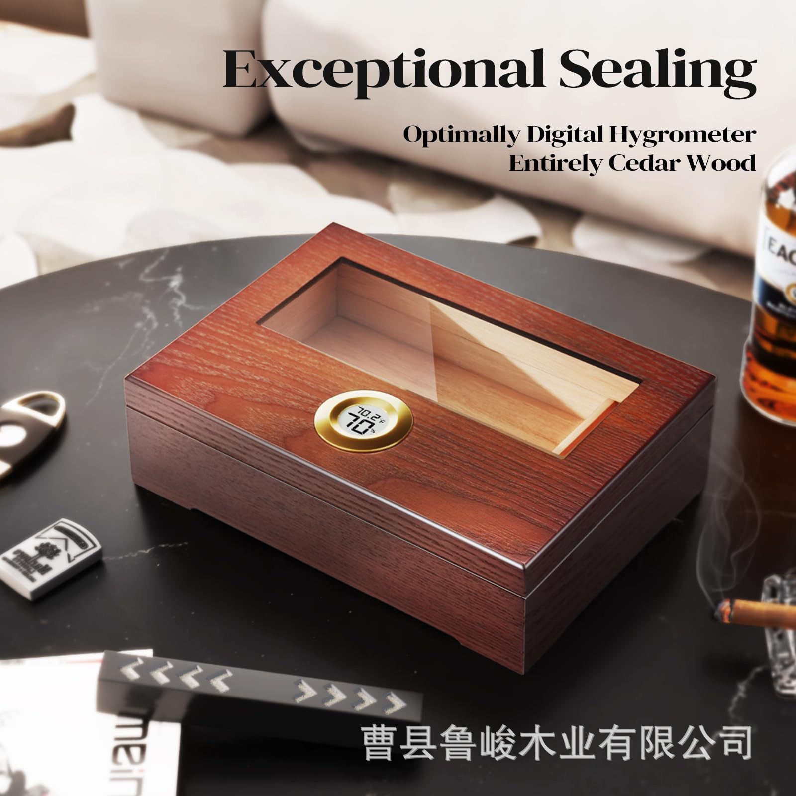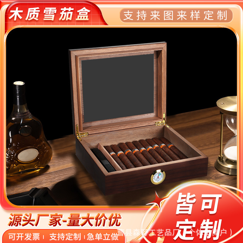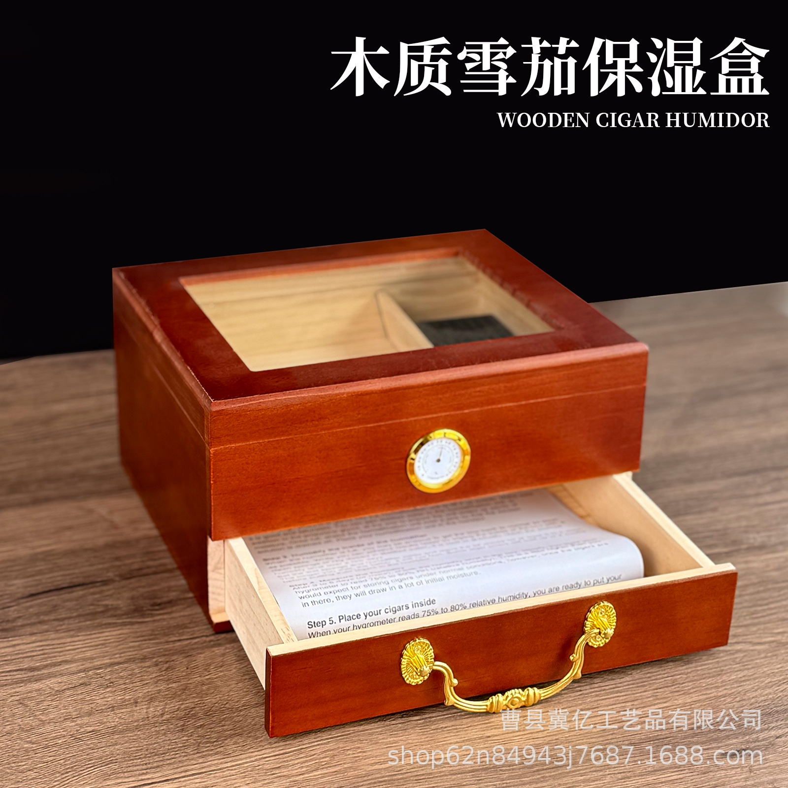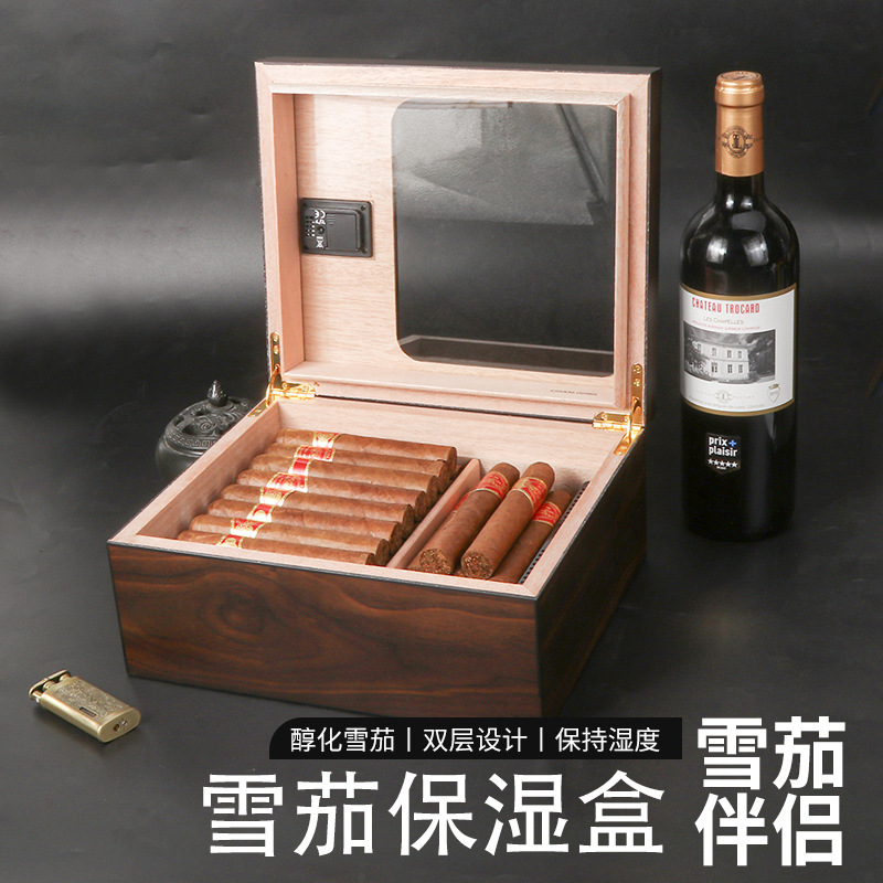 クロスボーダー杉材葉巻保湿ボックス葉巻恒温高視点窓葉巻保湿タバコボックス