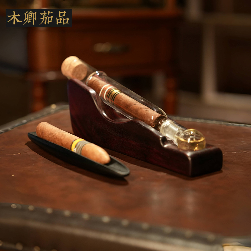 携帯電話タブレットホルダー付きクロスボーダー木製葉巻灰皿葉巻アクセサリー無垢材灰皿葉巻ケース