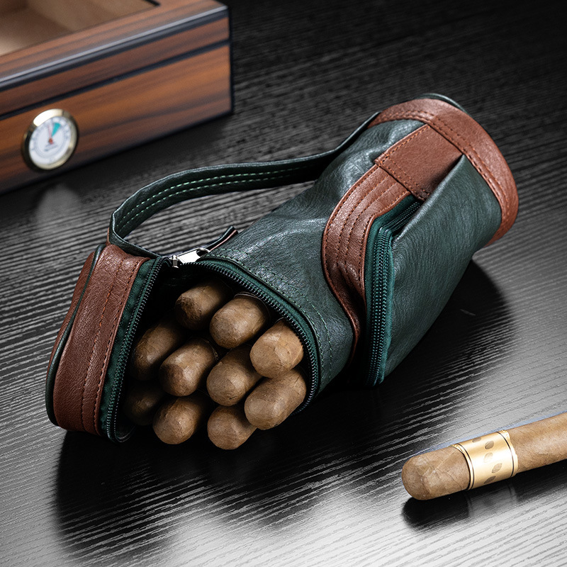 ヨーロッパとアメリカの新しいメンズ本革シガーボックス多機能ライチパターンポータブルシガー収納袋シガーレザーケース