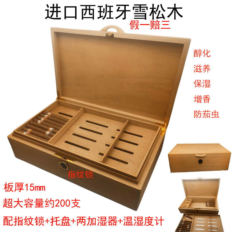 輸入スペイン杉箱葉巻保湿ボックス指紋ロック二層温湿度計キャビネット春華葉巻ボックス