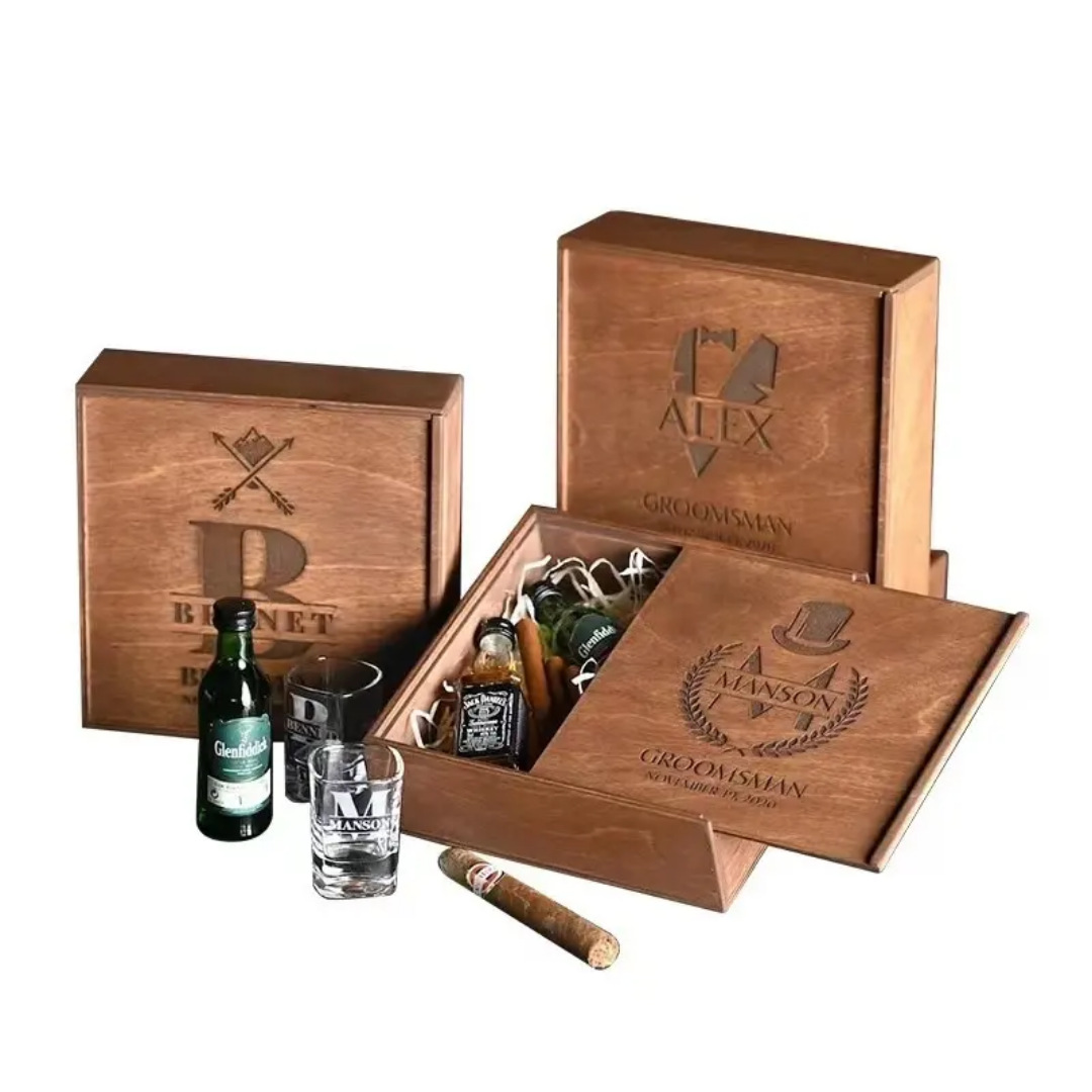 レトロ木製スライドカバー収納ボックス密封された葉巻タバコボックスメンズギフトウイスキーボックスベストマンギフトボックス