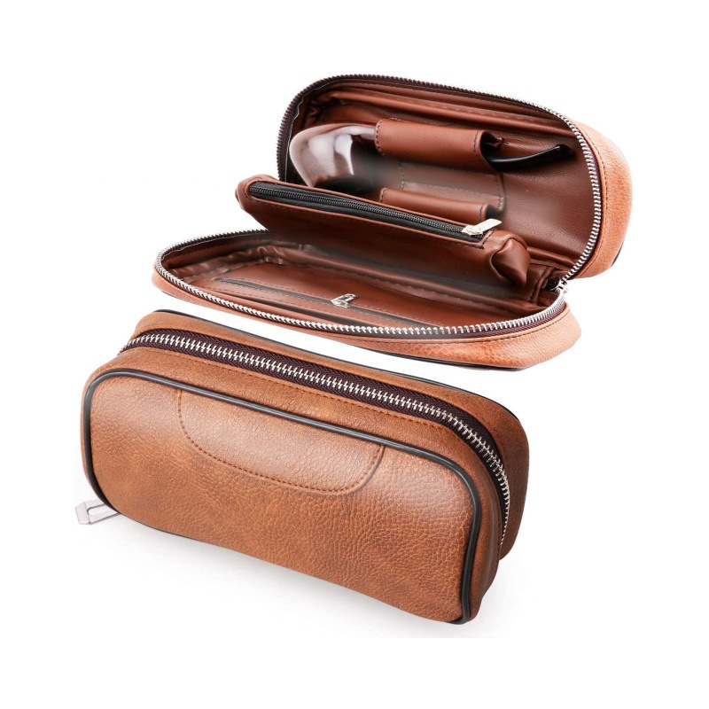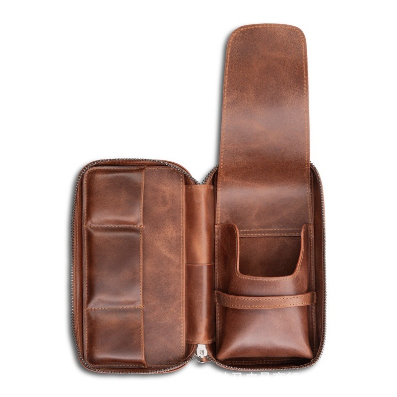 ヨーロッパとアメリカのレトロな本革メンズ 2 パックパイプ収納袋ポータブル大容量ジッパートバコ喫煙具収納袋