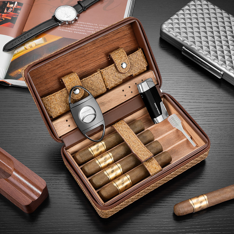 支装便携式热销雪松3保湿木雪茄盒套雪茄亚马逊礼品批发皮套雪茄