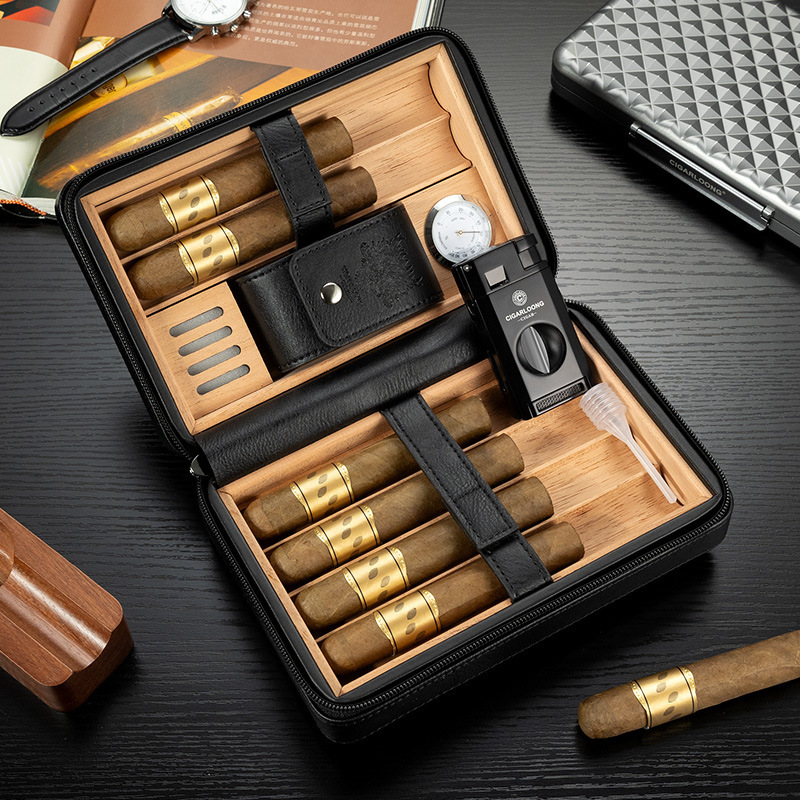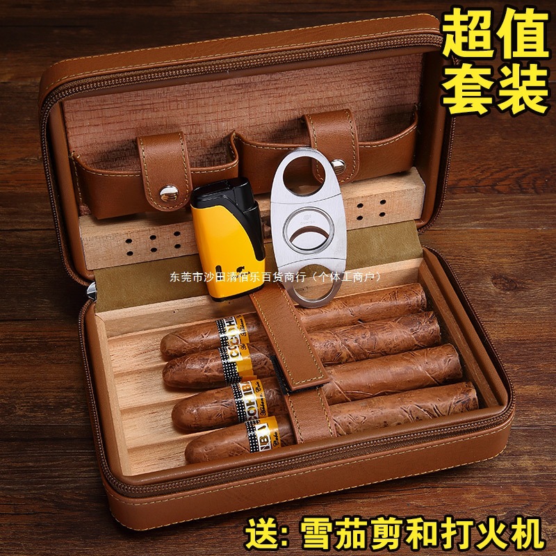 葉巻保湿ボックス、ポータブル葉巻バッグ、4本の葉巻カッター、ライターツールセット、タバコボックス
