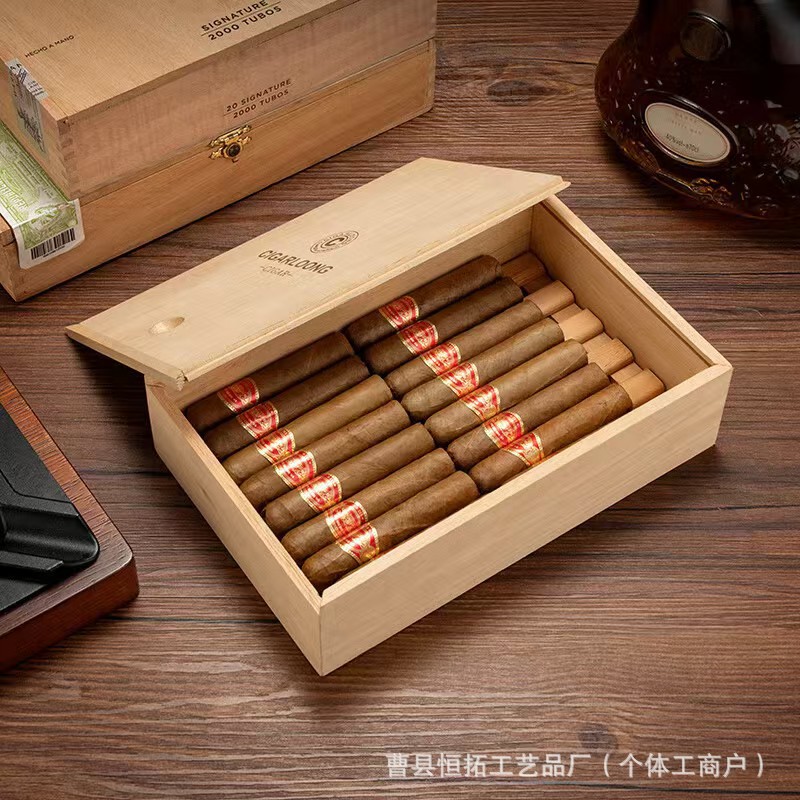 ライト高級パイン葉巻大容量保湿タバコ収納ボックス無垢材引き出しカバーメンズギフト葉巻タバコボックス