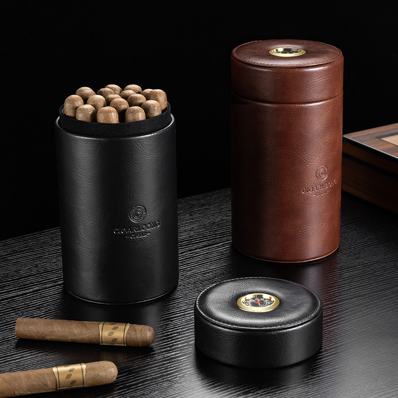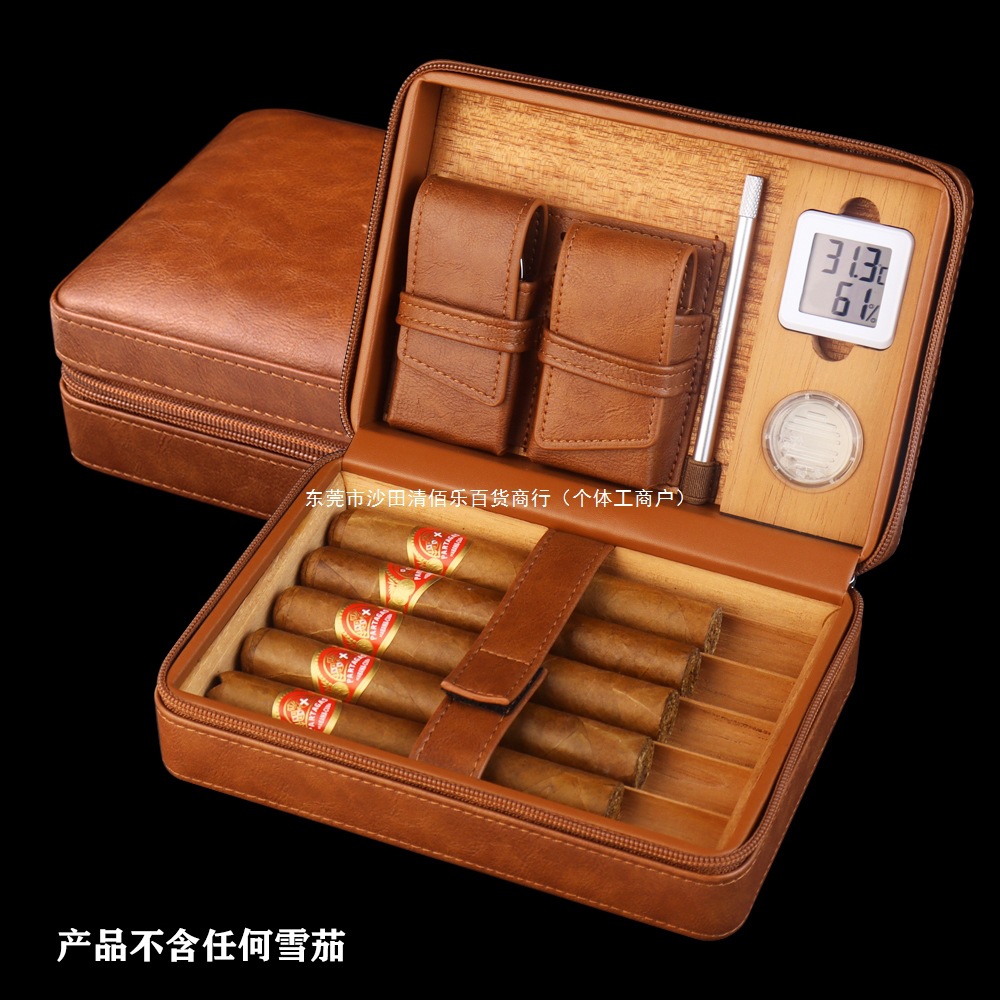 ✅ ✅ スポットポータブルシガーケーストラベルサイズブラウンレザーケースシガー保湿ボックスシガーバケットタバコボックスビジネス
