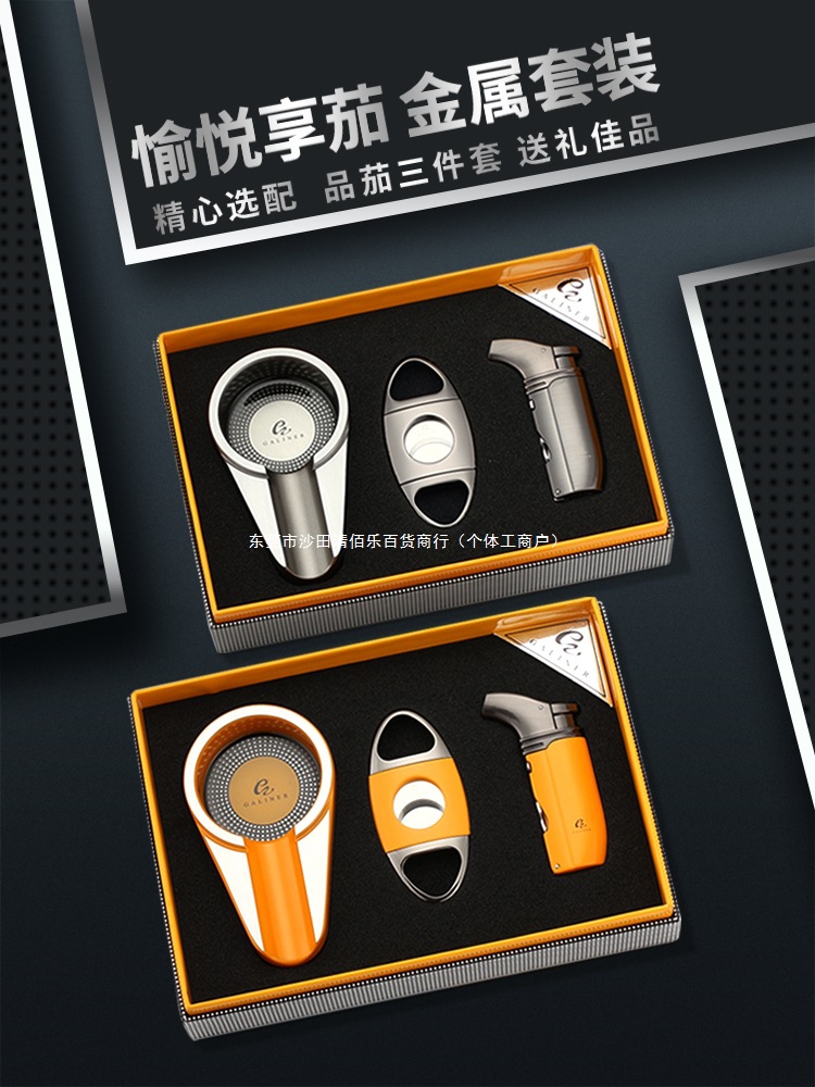 キューバ葉巻カッターセット、高級葉巻カッター、スプレーガンライターツールプライヤー、葉巻カッター、Qingbaileの3点セット