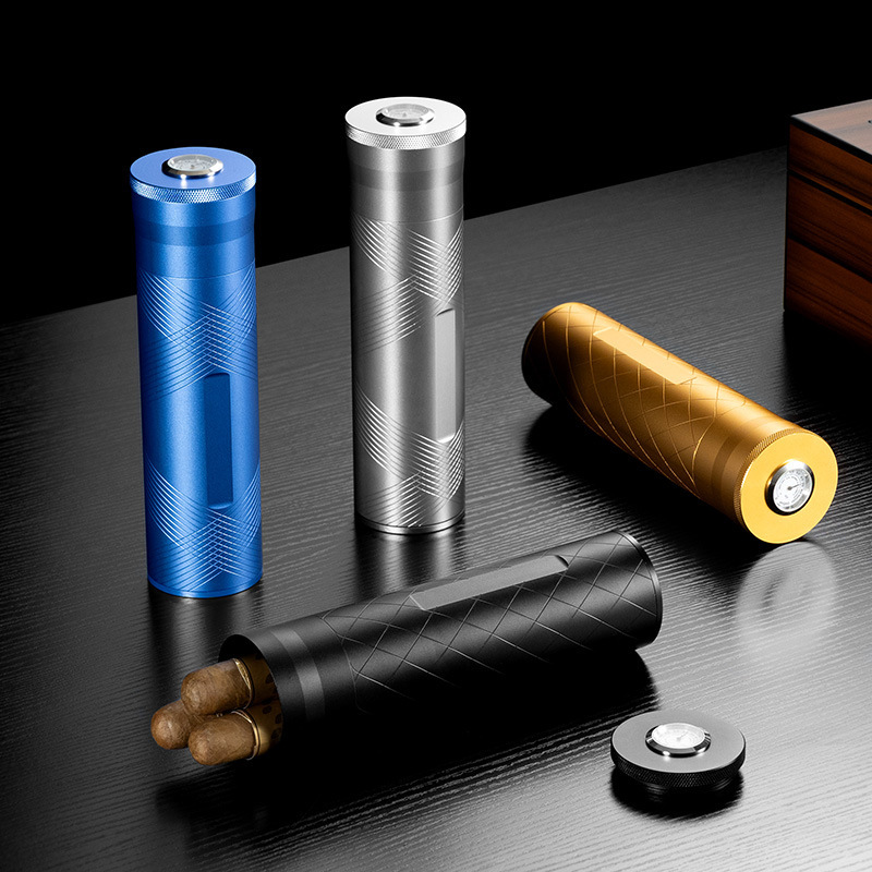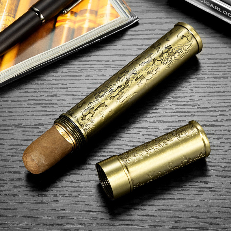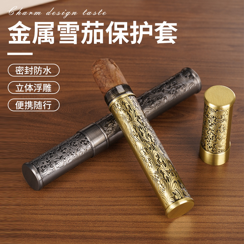 金属シガーチューブの美しいレリーフ模様収納シガー保護カバー単管ポータブルシガーケース保湿筒
