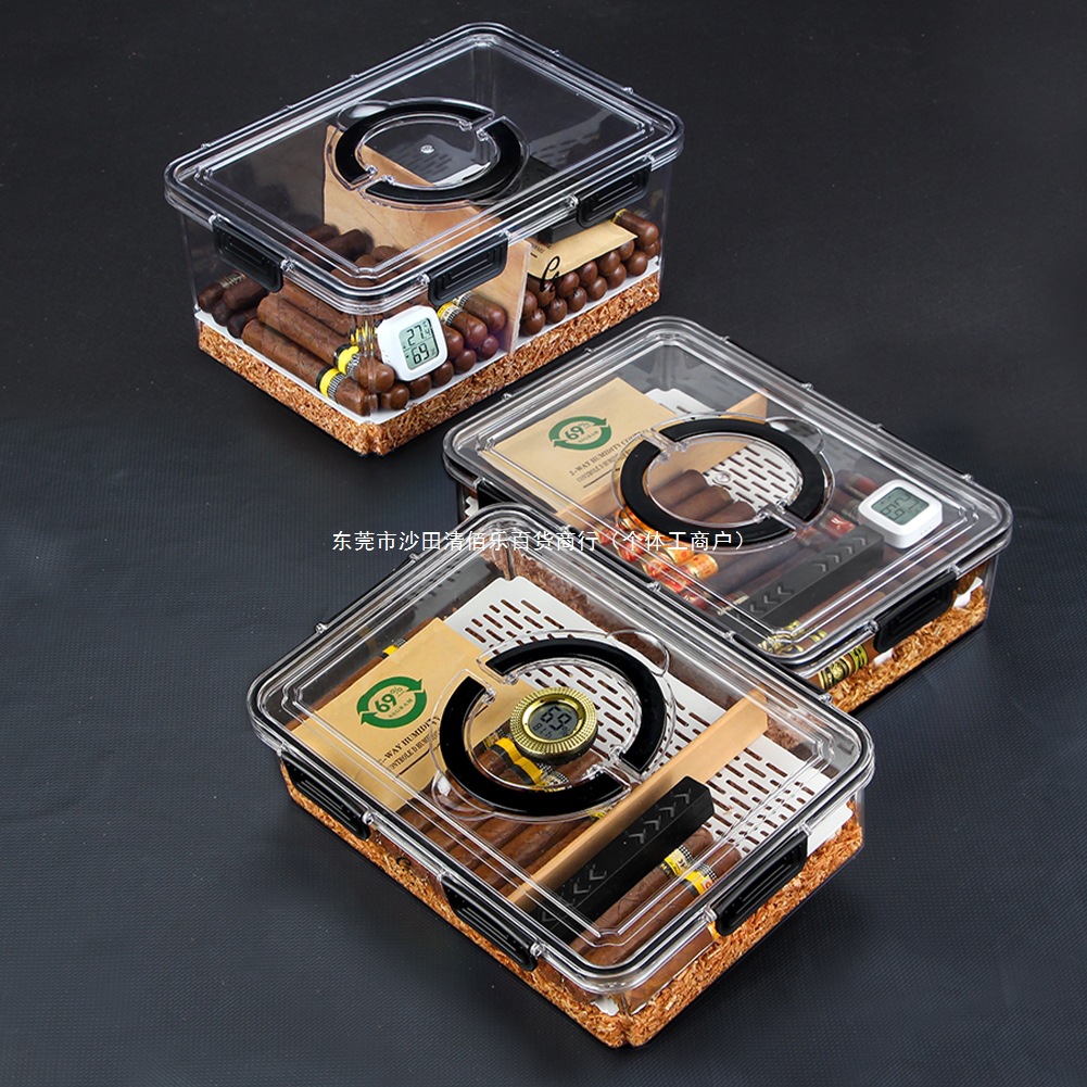 シガーボックスポータブル旅行プラスチック防水シガー保湿ボックス加湿器付きシマノキシガー清佰楽