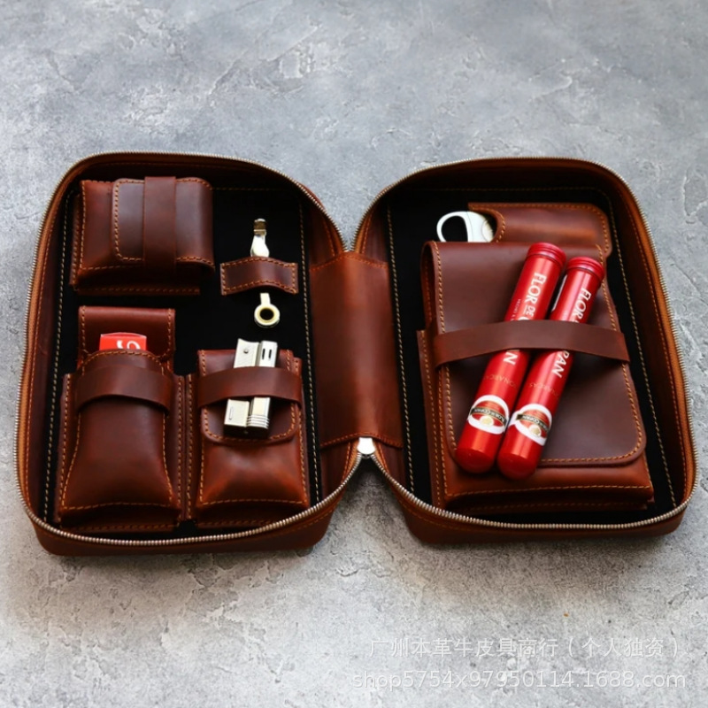 クロスボーダー本革レトロシガーバッグヨーロッパとアメリカの多機能大容量ポータブルハイエンドポータブルシガーバッグ