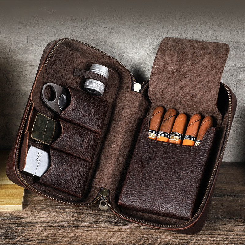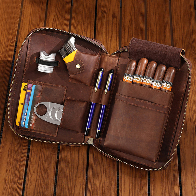 欧米の新型五本は本革のレトロなシガーケースを入れて、携帯旅行のジッパーのシガーの保湿ケースのシガーを入れて収納します。