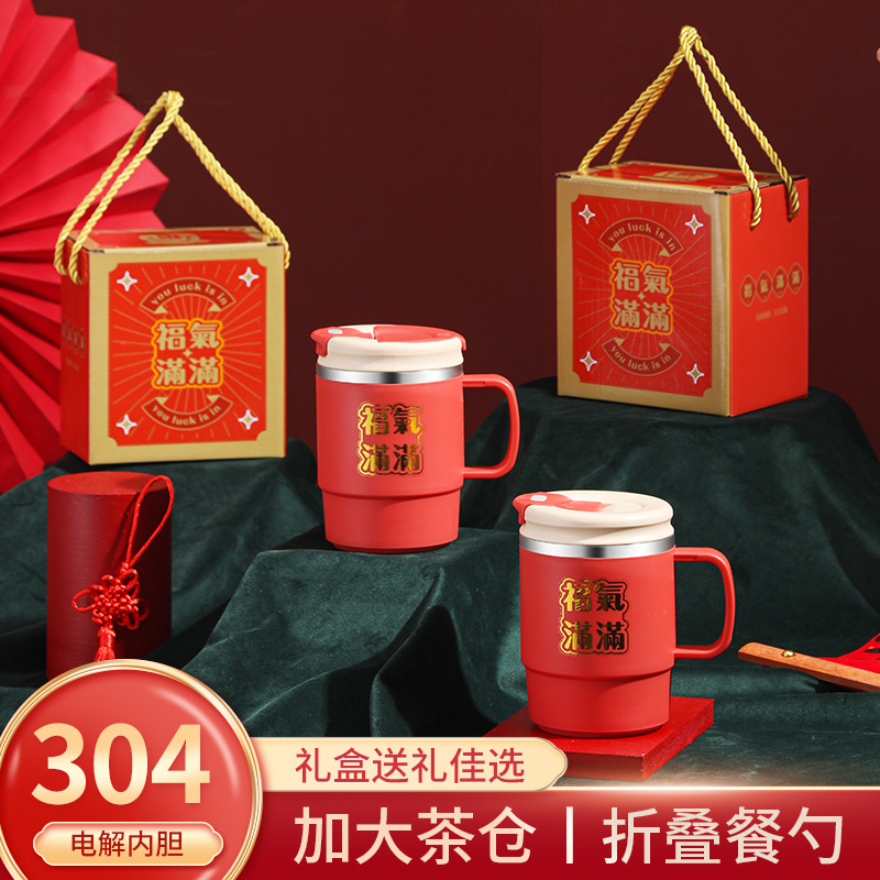 304ステンレスマグカップ茶水分離オフィスカップ夏コーヒーカップボックスポイント交換お祝いプレゼント