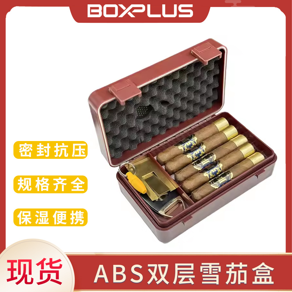 クロスボーダー人気ABSプラスチック二重保湿ポータブルシガーケース旅行シガーケース10本入り湿度計内蔵