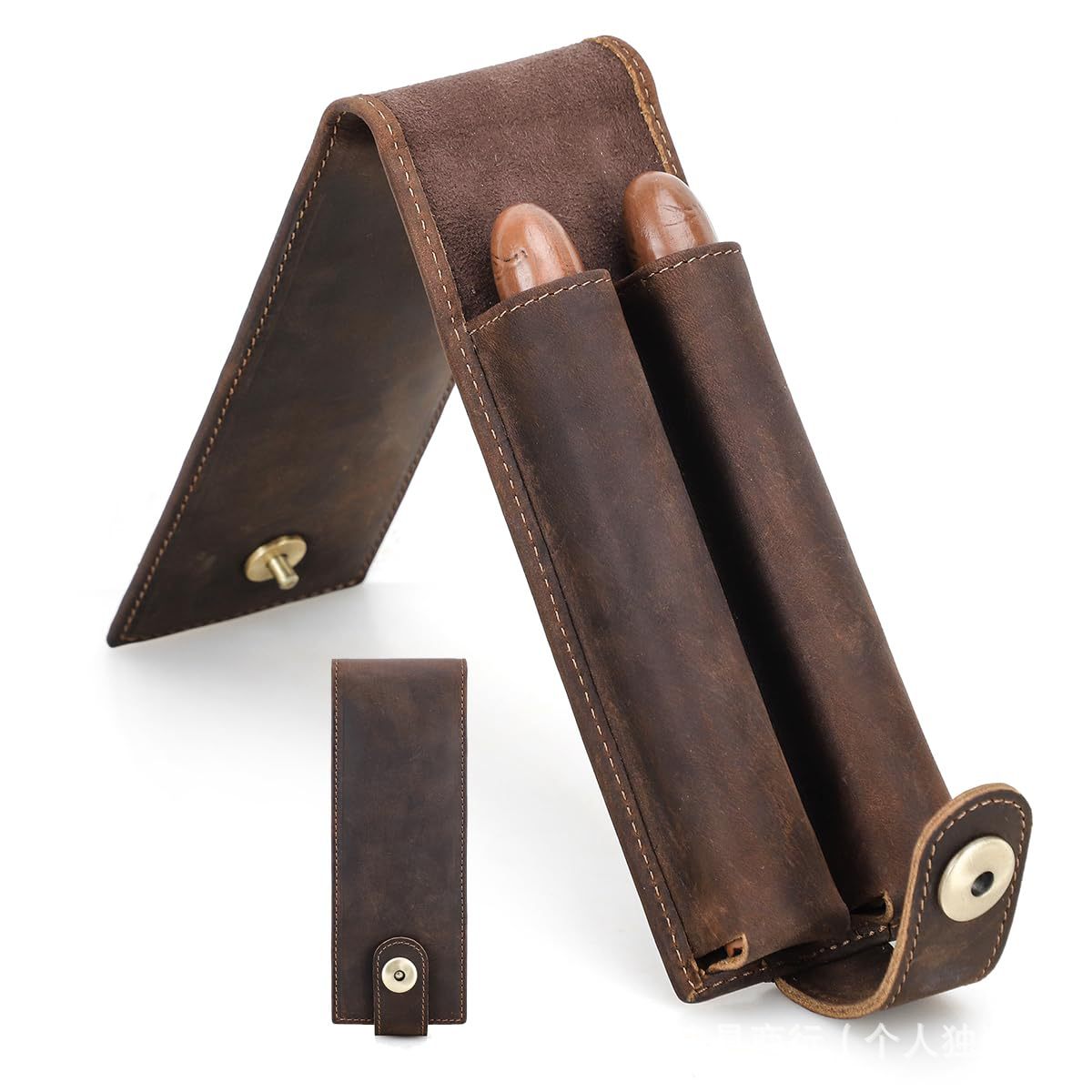 レトロ狂馬牛革2本入シガーカバー携帯シガーケース本革シガー収納CH-25AT1