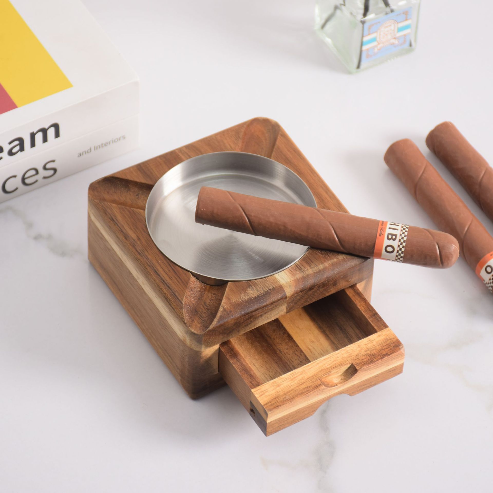 クロスボーダー木製シガー収納ボックスレトロ引き出し式シガー収納ボックスシガー灰皿ウイスキーカップホルダー