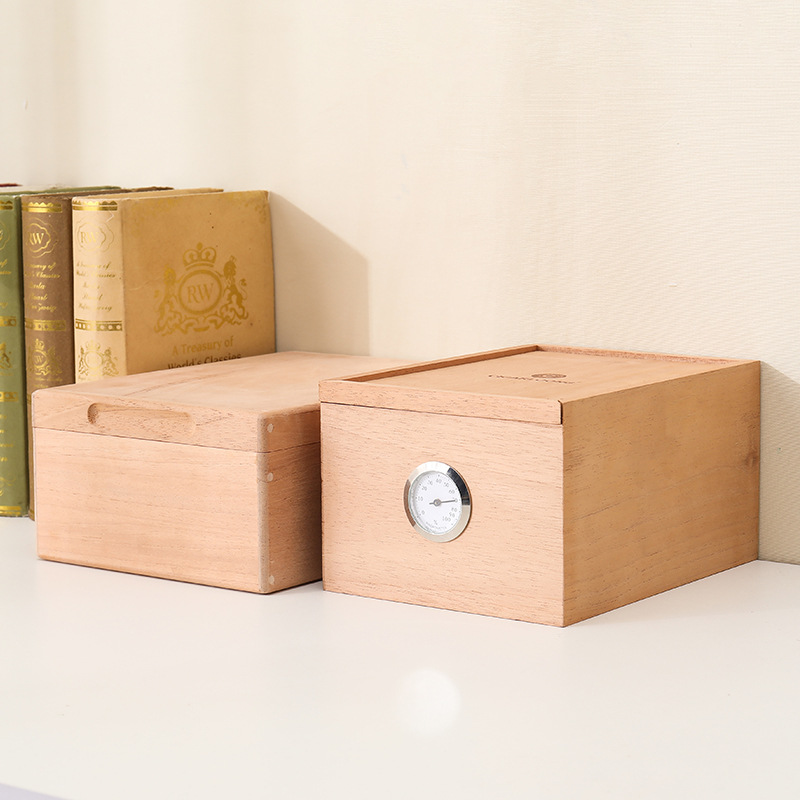 クリエイティブ木製シガー収納ボックス木製シガータバコ収納ボックスオフィスデスクトップ温度計シガー収納