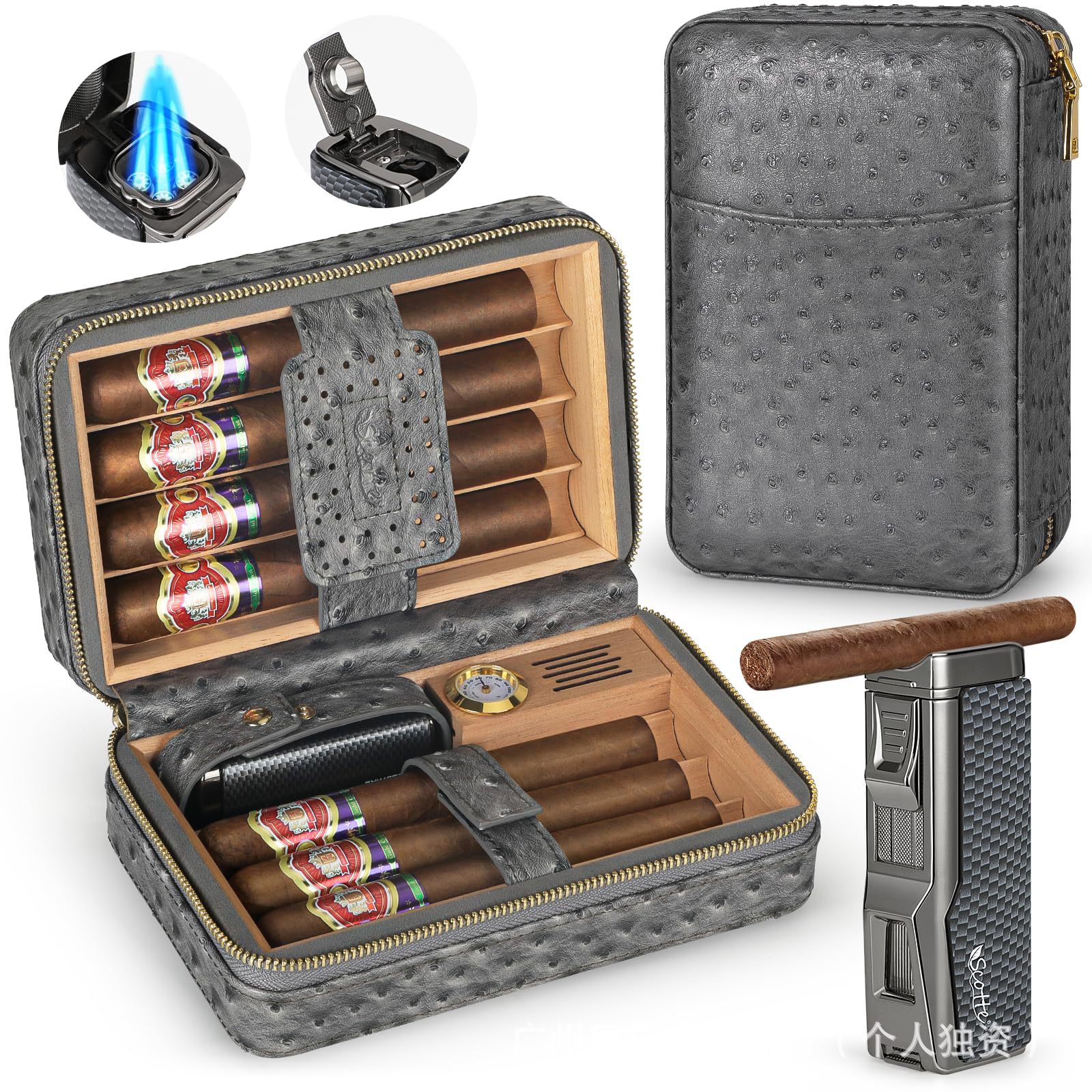 メーカースポットポータブルシガー保湿ボックス旅行シガーボックス10本入シガーボックス内蔵湿度計