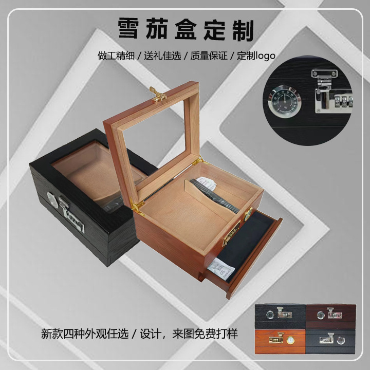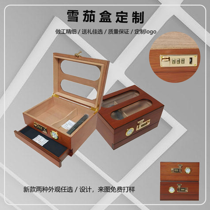 シガー保湿箱シ松木開窓透明保湿バーとパスワードロックシガーボックス木製品