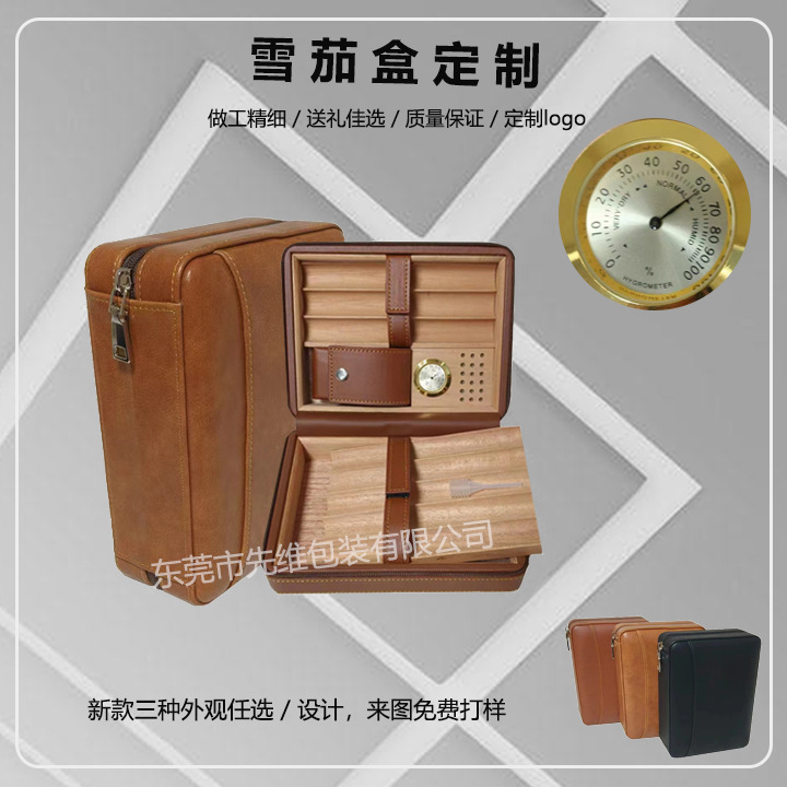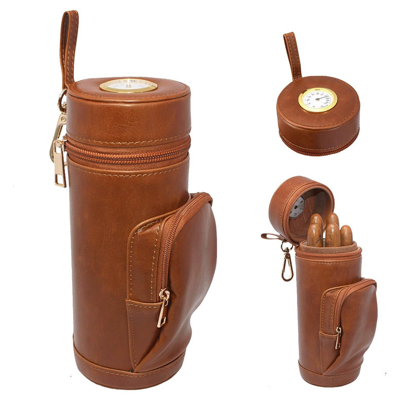 クロスボーダー欧米ファッション円筒型革シガーバッグ大容量シフォンシガー保湿ジッパー収納ボックス