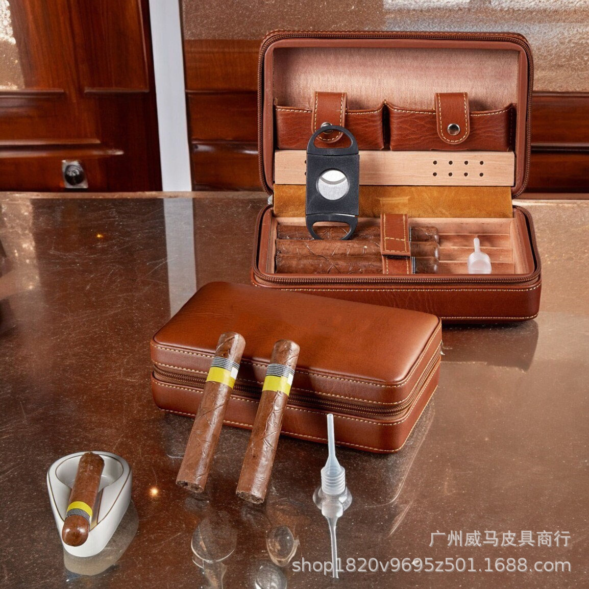シガー保湿箱携帯用シガーバッグ4本セットシガーライターツールセットシガーケース趙のお金