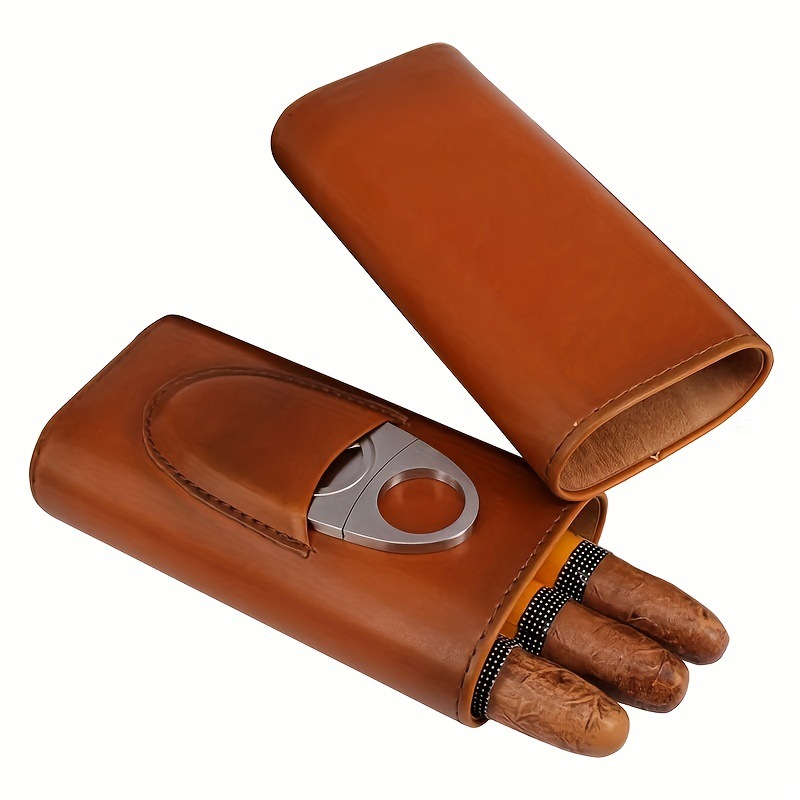アマゾンのトップ牛革男性3本入シガー革カバー外国貿易本革便利防湿シガーカットシガーケース