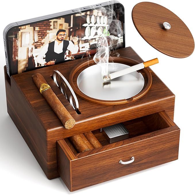 クロスボーダー木製シガー灰皿木製引き出しシガーボックス灰皿付きポータブル車載灰皿