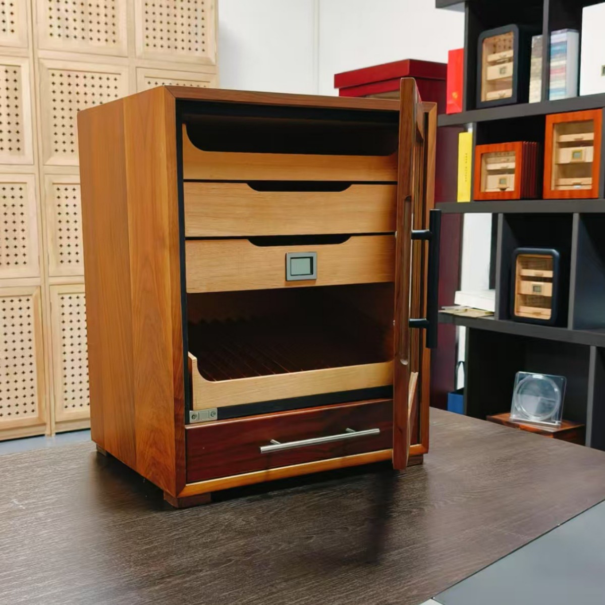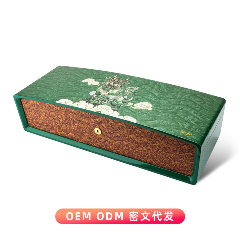 携帯型シガーボックスの保湿ボックスにはパスワードロックと引き出しのシガーボックスの木製品がついています。