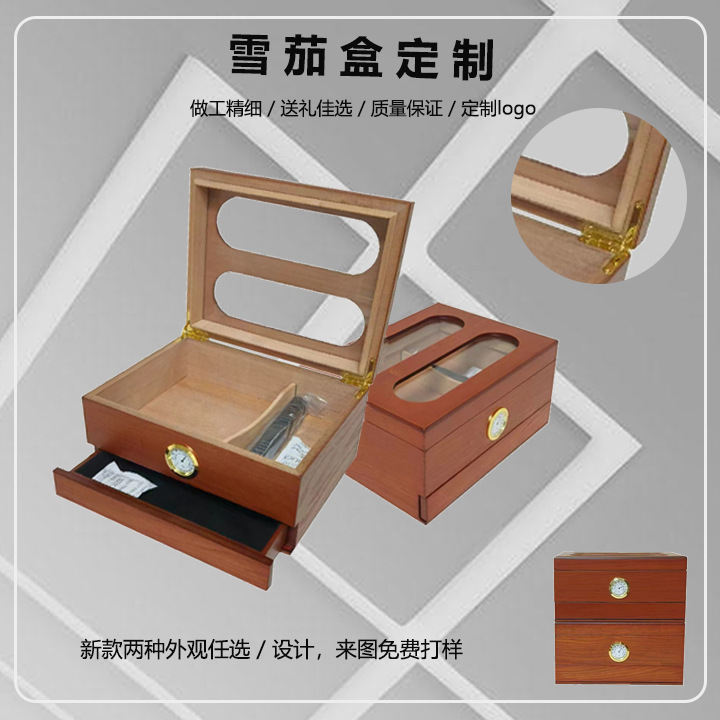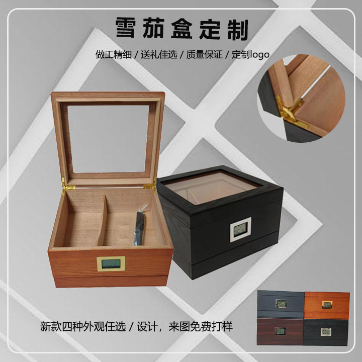 義烏メーカー新設計古銅色ヒンジロック帯湿度計アクリル葉巻箱雪