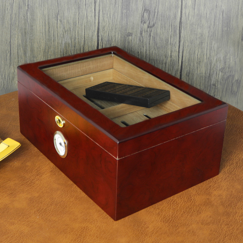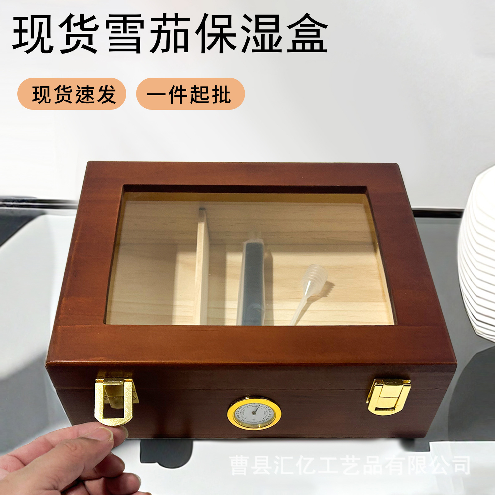 雪松木雪茄保湿盒20支装大容量雪茄盒配电子湿度计透明烟盒 批发