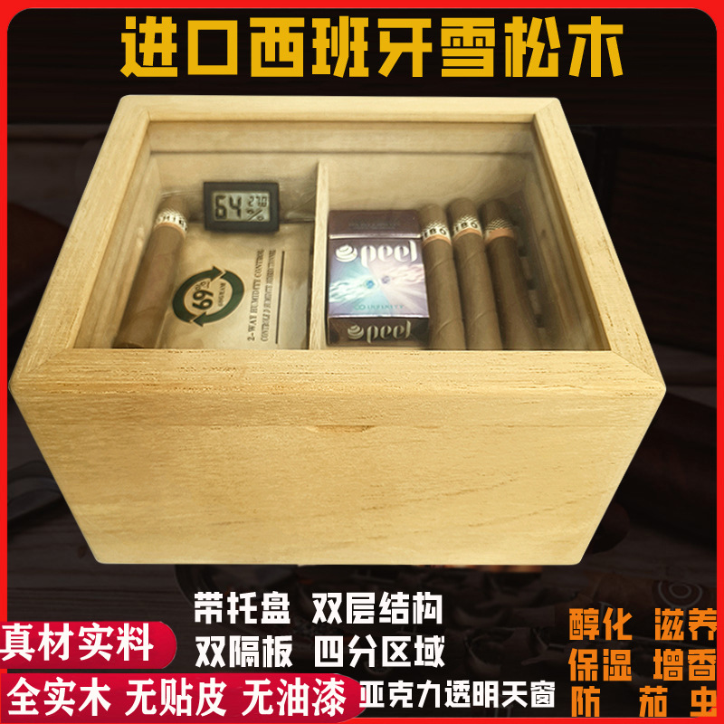 スペイン杉木箱シガーケース天窓二重木大容量アルコールセット携帯シガー保湿箱