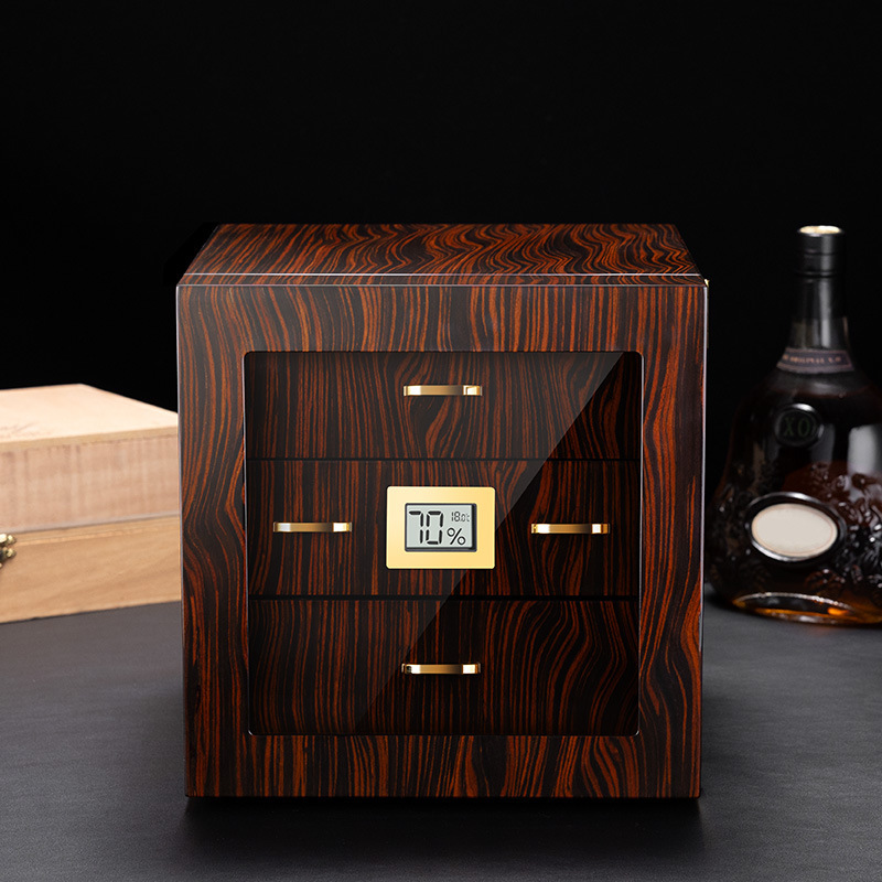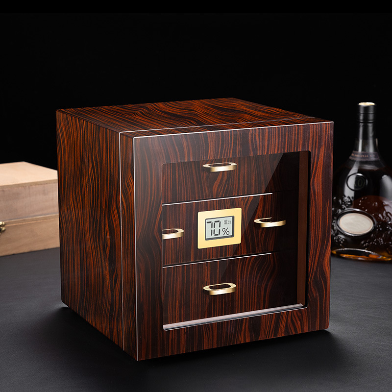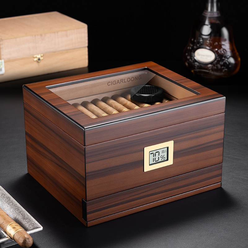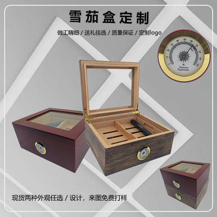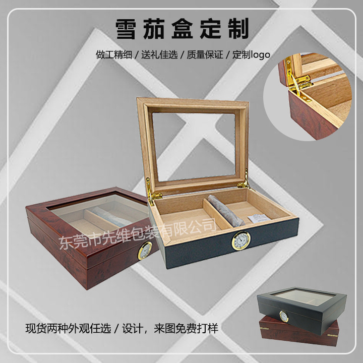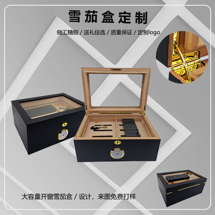 木製シガーボックスクロスボーダー卸売フリップ式透明シガー保湿ボックス大容量木製シガーボックス