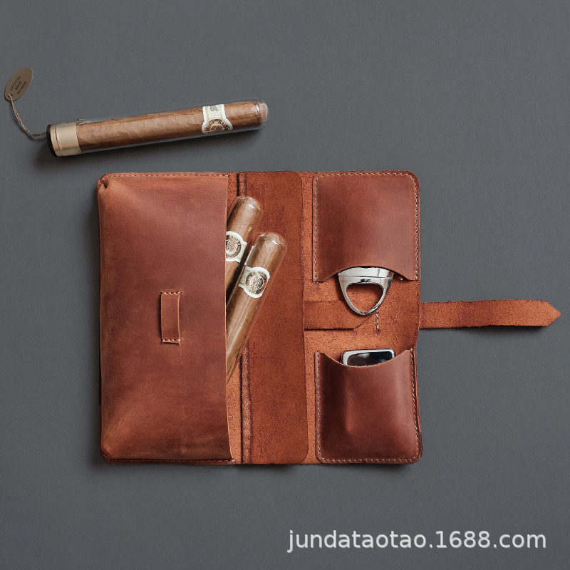 クロスボーダー人気ロングタイプシガー収納バッグレザーポータブル外出多機能大容量シガーケース