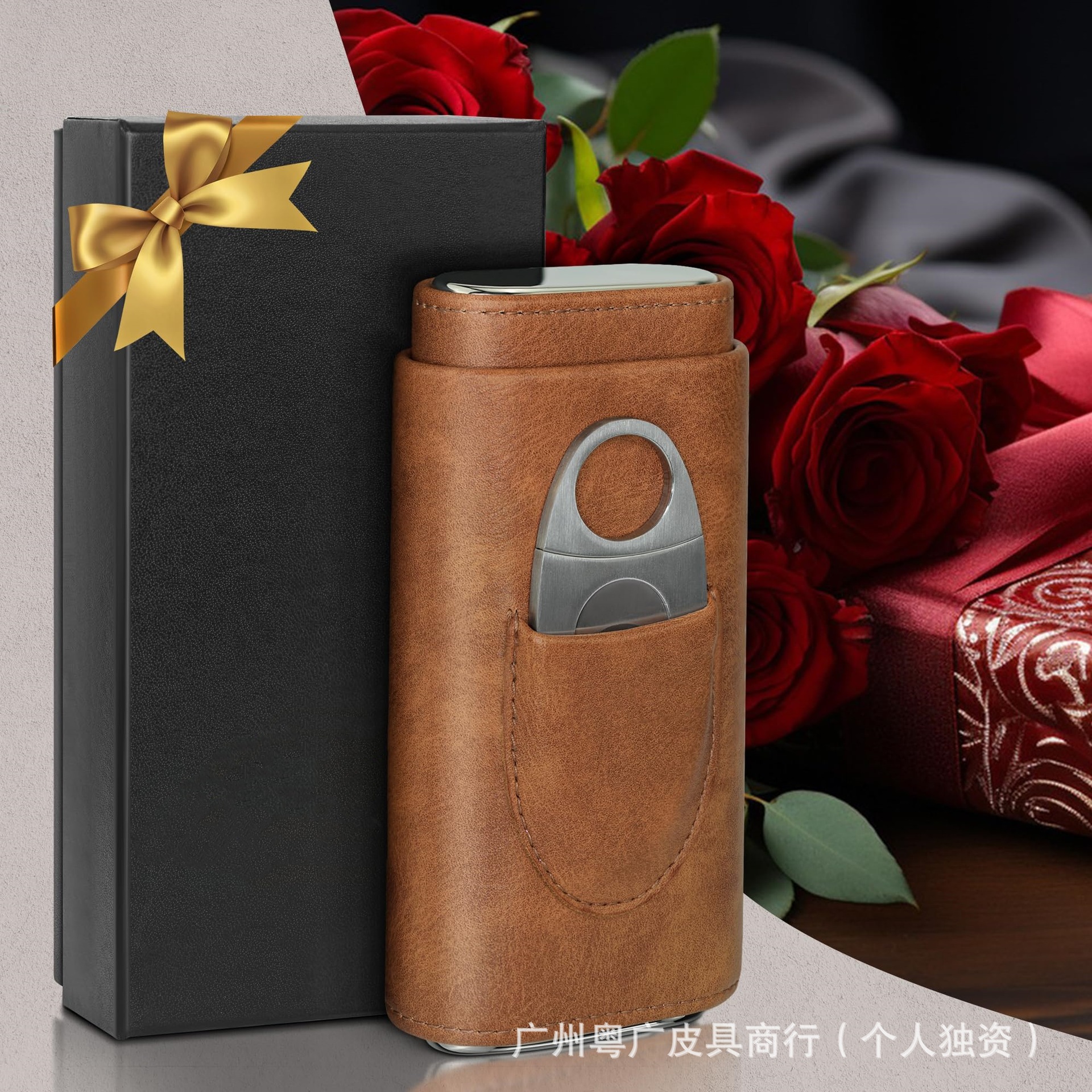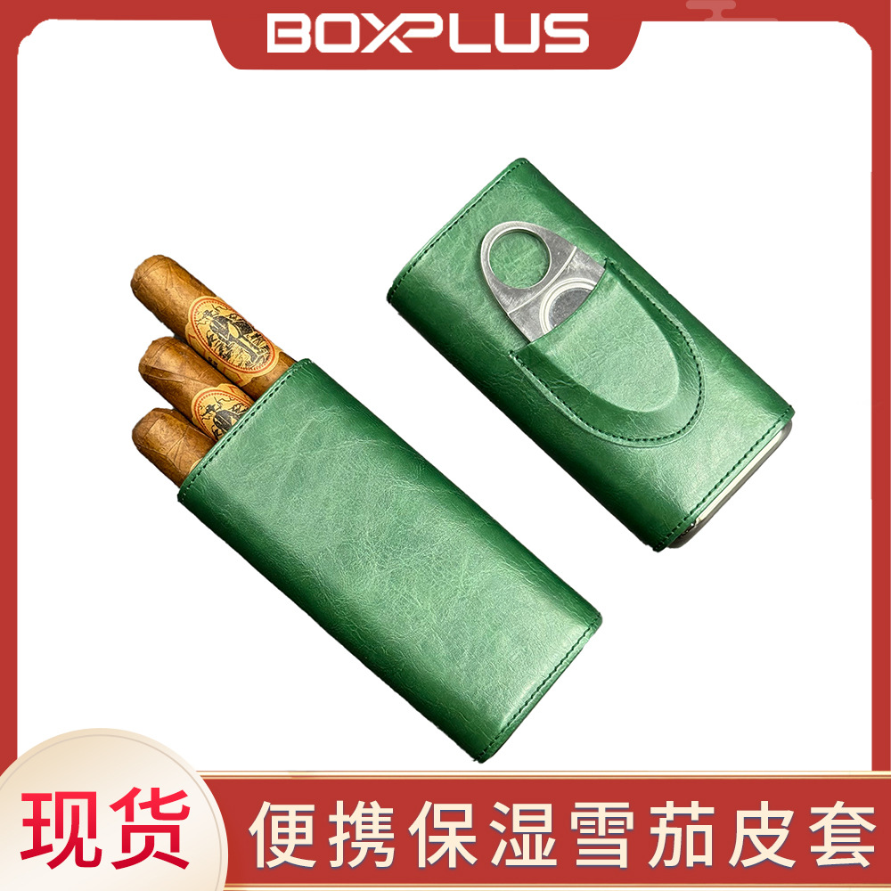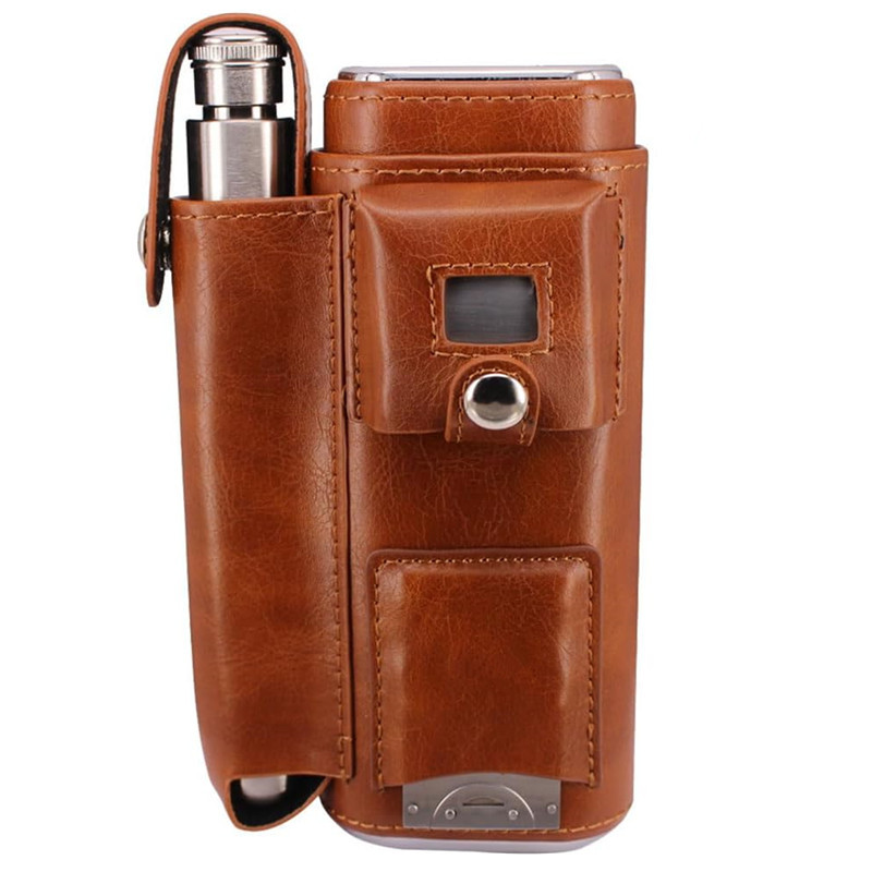 欧米の新型真皮三本入男性用シガーケース多機能携帯用シガーアクセサリー皮カバーシガー保湿ケース