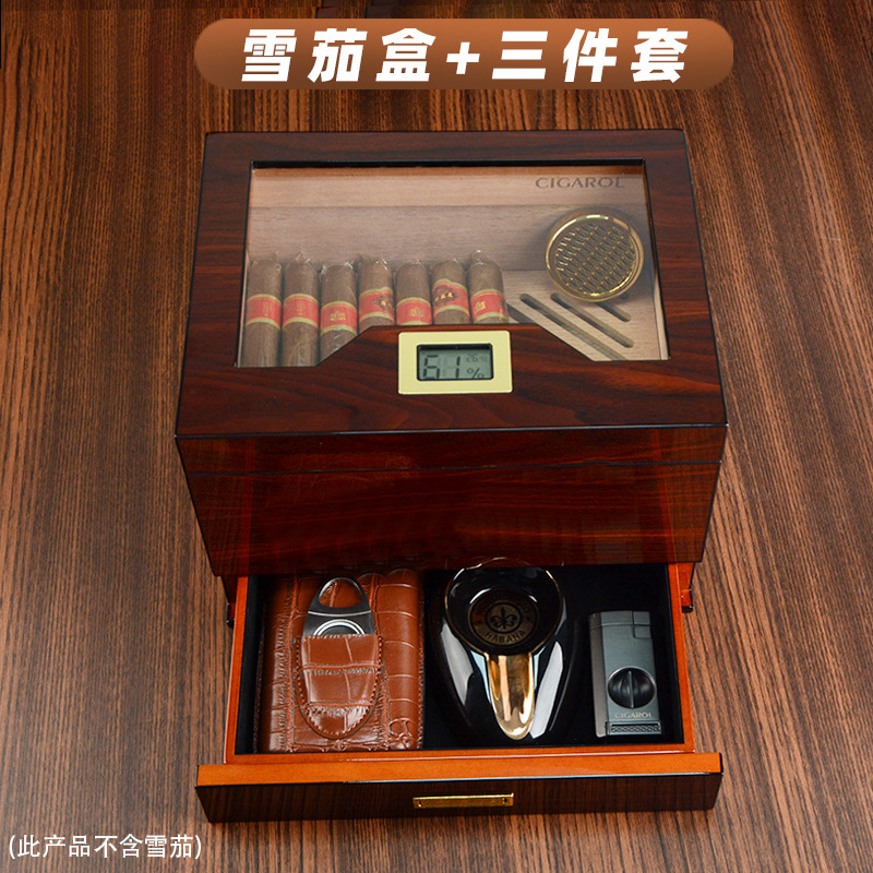 多機能シガーボックス男性用高級シガー保護カバーシガー松防湿保湿シガーボックスとライター