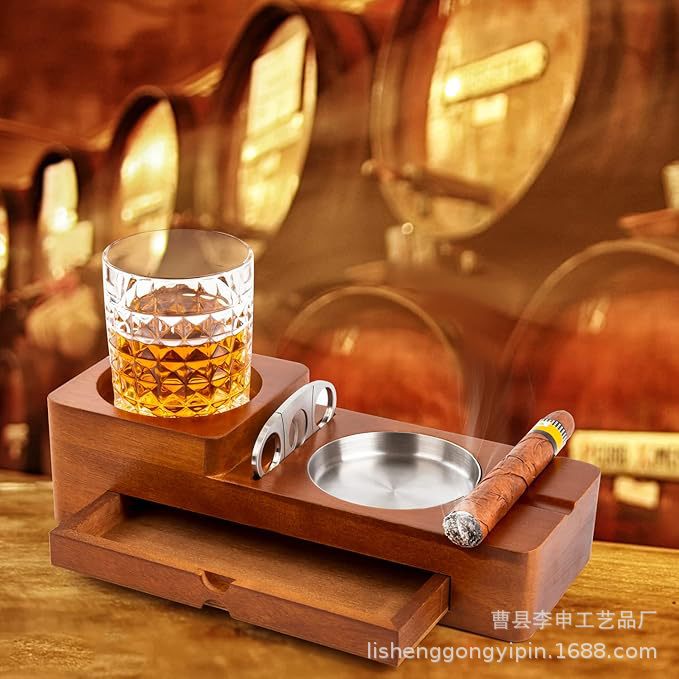 レトロな木製灰皿ウイスキーカップ付き家庭用男性灰皿引き出し付きシガー収納ケース