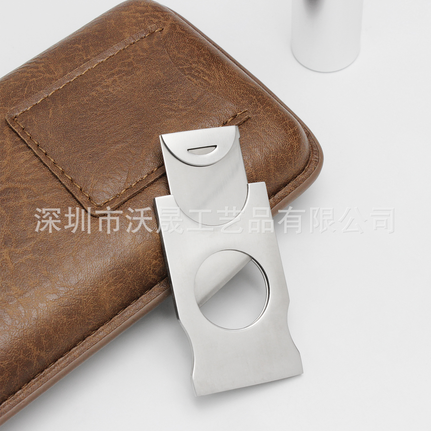 アメリカ式携帯3本入シガー皮カバーはさみセット