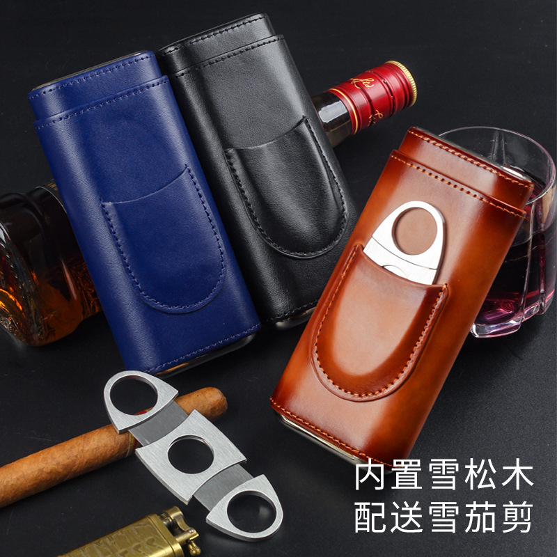 三本入りPUシガー保湿筒シダーウッド内携帯男性シガー保護カバーステンレスシガーナイフ