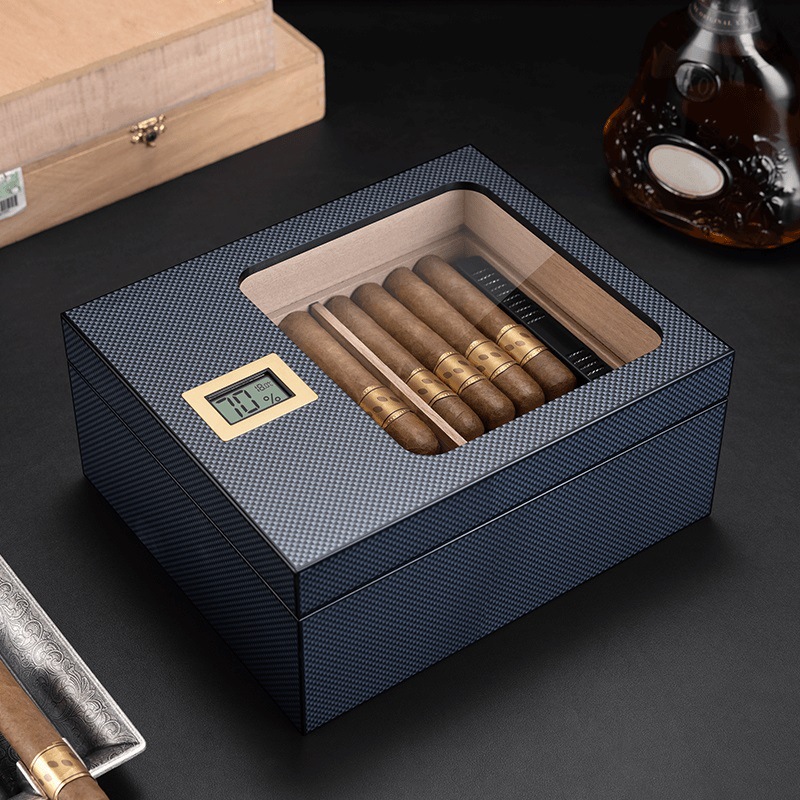 クロスボーダーガラス上蓋木製シガーボックス大容量シガー保湿ボックス引き出し付き