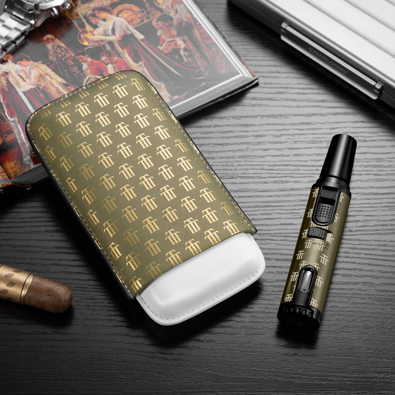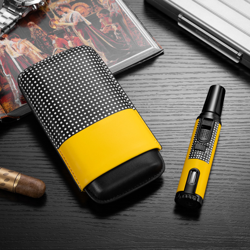 シガー煙具セット携帯3本セットシガーセット防風直沖ライター2点セットギフトボックスCT-24IP
