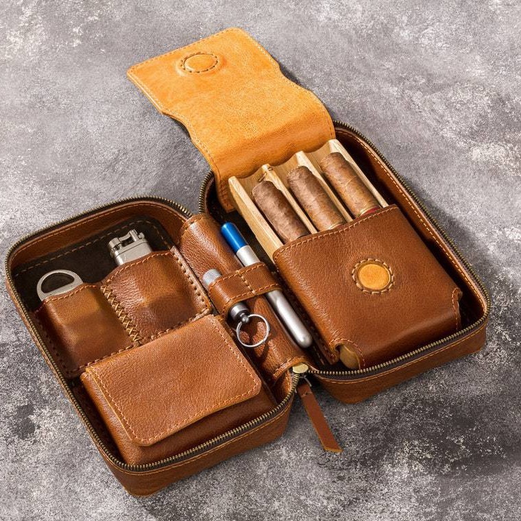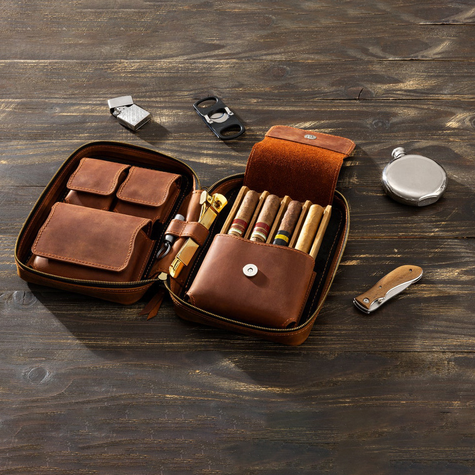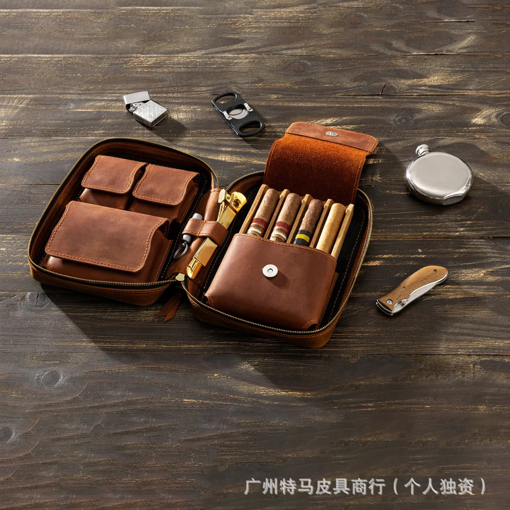 欧米のレトロな新型本革手作り4本入のシガー保湿ケース携帯ファスナー大容量シガーバッグ