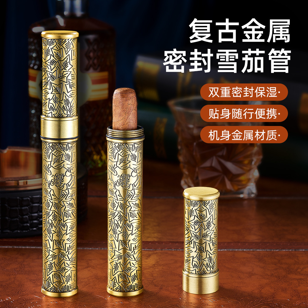 金属密封された葉巻チューブレトロエンボスパターン収納葉巻保護カバーシングルチューブポータブル葉巻ボックス保湿チューブ