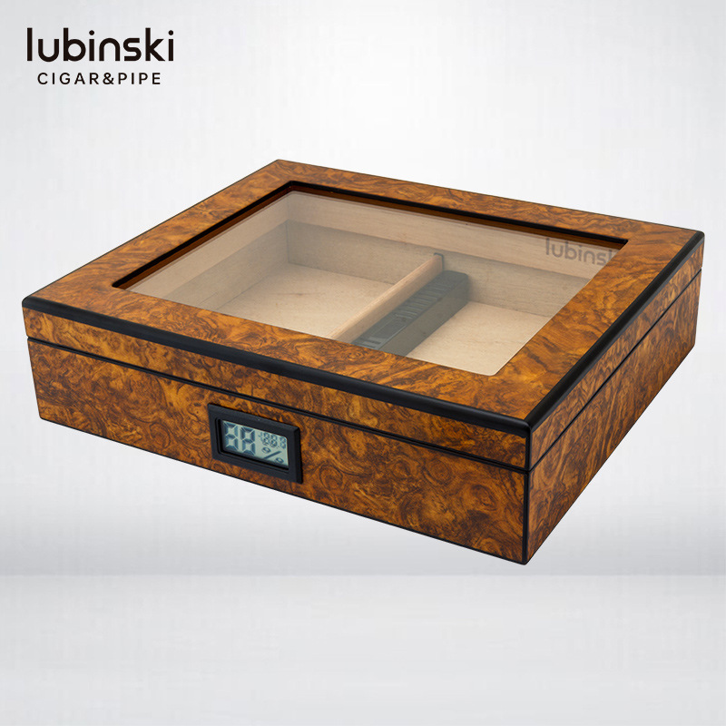 現品シガーケース透明木製保湿器付シガー収納ケースカバー式木製可視シガー収納ケース